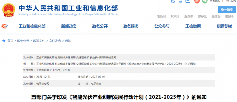 2022年1月4日,工信部等五部門聯(lián)合印發(fā)《智能光伏產(chǎn)業(yè)創(chuàng)新發(fā)展行動(dòng)計(jì)劃(2021-2025年)》,其中的主要任務(wù)就包括助力“智能光伏交通”在內(nèi)的各領(lǐng)域碳達(dá)峰碳中和。加快“光伏+交通”等融合發(fā)展項(xiàng)目推廣應(yīng)用,推動(dòng)交通領(lǐng)域光伏電站及充電樁示范建設(shè)。堅(jiān)持充分論證、因地制宜、試點(diǎn)先行的原則,鼓勵(lì)光伏發(fā)電在公路服務(wù)區(qū)(停車場(chǎng))、加油站、公路邊坡、公路隧道、公交貨運(yùn)場(chǎng)站、港口碼頭、航標(biāo)等導(dǎo)助航設(shè)施、碼頭躉船、海島工作站點(diǎn)等領(lǐng)域的應(yīng)用。