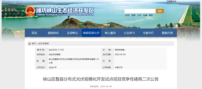 峽山區(qū)整縣分布式光伏規(guī)?;_發(fā)試點項目競爭性磋商二次公告