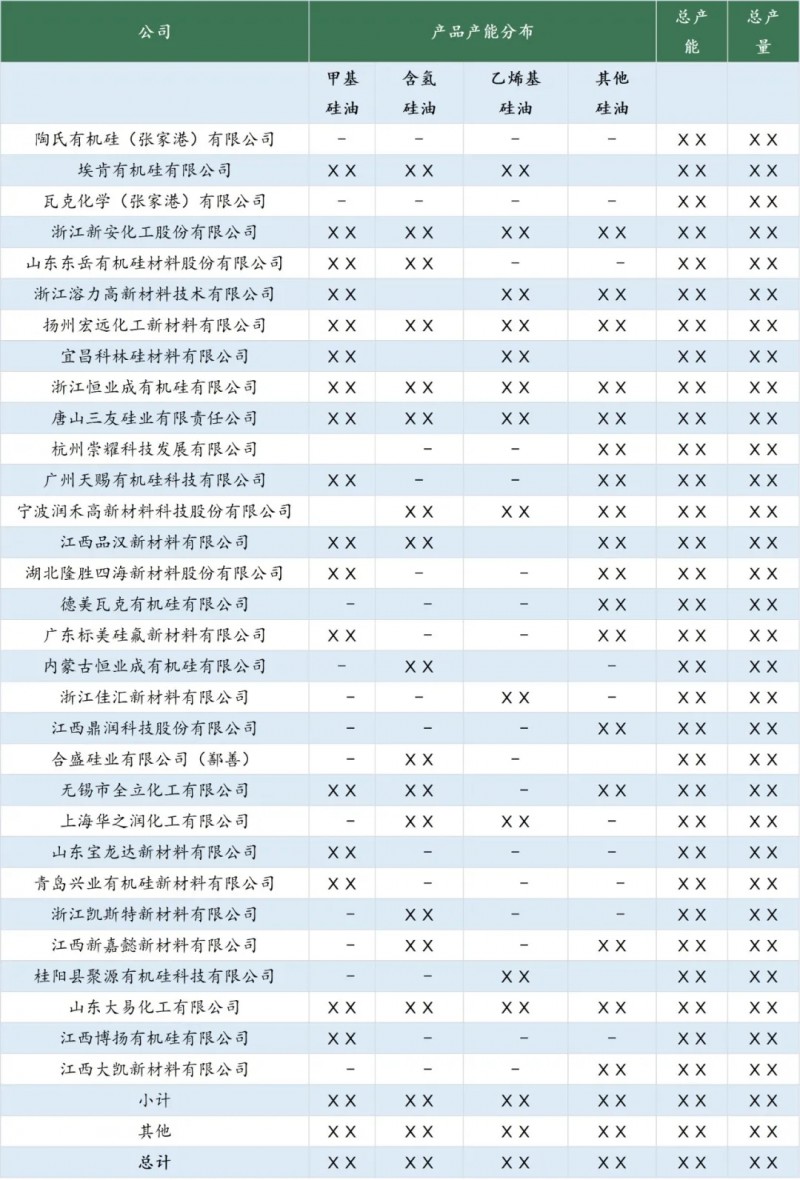 表1 2020年中國主要硅油生產(chǎn)企業(yè)