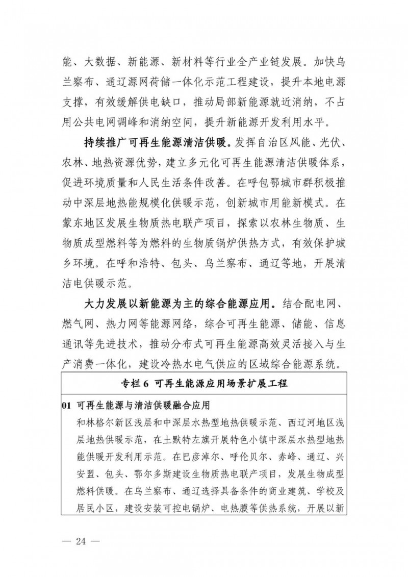 可再生能源供熱目標。自治區(qū)地熱能、生物質(zhì)能、 太陽能供暖和新能源電力供暖利用規(guī)模顯著提升。全區(qū)可再生能源供暖面積達到 3600 萬平方米,“十四五”期間新增2500 萬平方米。