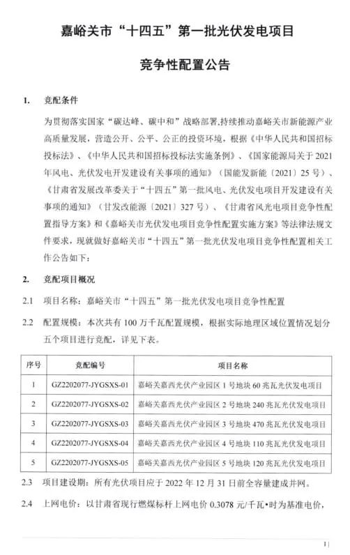 配儲(chǔ)規(guī)模≥20%!甘肅嘉峪關(guān)發(fā)布1GW光伏競(jìng)爭(zhēng)性配置項(xiàng)目