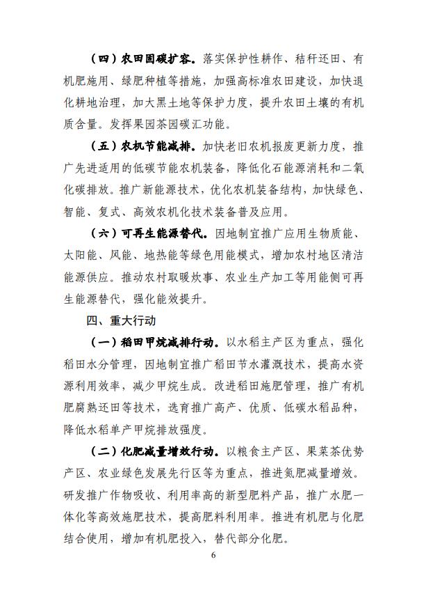 6月30日,農(nóng)業(yè)農(nóng)村部國家發(fā)展改革委發(fā)布了《農(nóng)業(yè)農(nóng)村減排固碳實施方案》,為貫徹落實碳達(dá)峰碳中和重大決策部署,推進農(nóng)業(yè)農(nóng)村綠色低碳發(fā)展,農(nóng)業(yè)農(nóng)村部、國家發(fā)改委制定了《農(nóng)業(yè)農(nóng)村減排固碳實施方案》,方案指出6大任務(wù),10大行動。