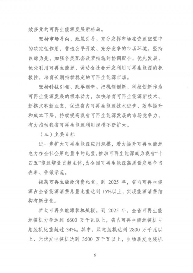 ● 提高可再生能源消費比重:到 2025 年,省內(nèi)可再生能源占全省能源消費總量比重達到15%以上,實現(xiàn)能源消費結(jié)構(gòu)有新優(yōu)化。