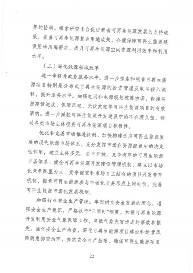 ● 擴大可再生能源裝機規(guī)模:到2025年,全省可再生能源裝機力爭達到6600萬千瓦以上,省內(nèi)可再生能源裝機占總裝機比重超過34%。其中,風(fēng)電裝機達到2800萬千瓦以 上,光伏發(fā)電裝機達到 3500 萬千瓦以上,生物質(zhì)發(fā)電裝機達到300萬千瓦以上,另外,抽水蓄能裝機達到328萬千瓦 以上,實現(xiàn)電力裝機結(jié)構(gòu)有新跨越。