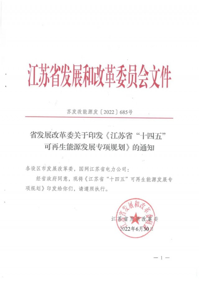 近日,江蘇省發(fā)改委印發(fā)《江蘇省“十四五”可再生能源發(fā)展專項規(guī)劃》,進一步擴大可再生能源應(yīng)用規(guī)模,著力提升可再生能源 電力在全社會用電量中的比重。規(guī)劃提出主要目標(biāo):