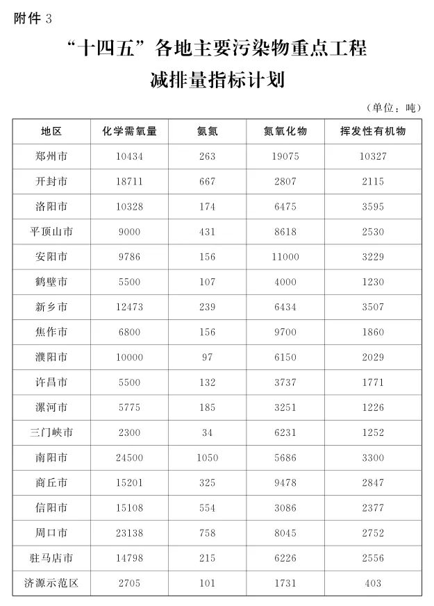 3.“十四五”各地主要污染物重點工程減排量指標(biāo)計劃