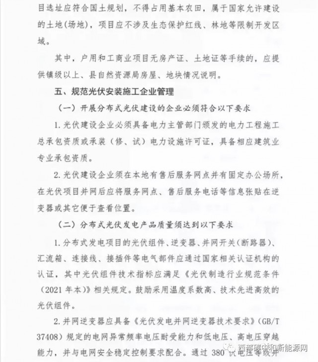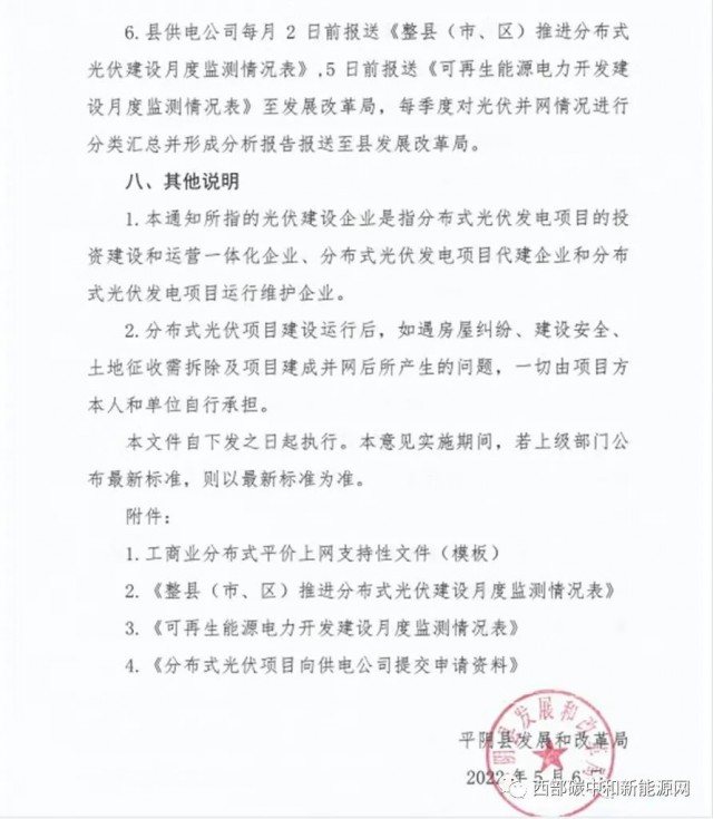 此外,整縣分布式開發(fā)按照“光伏+儲能”方式推進,根據(jù)具體消納情況配建或租賃不低于15%、2小時的儲能設(shè)施。電網(wǎng)消納能力不足時,應(yīng)提高儲能配置比例及充放電時長,確保分布式光伏就地就近消納、滿足95%利用率要求。