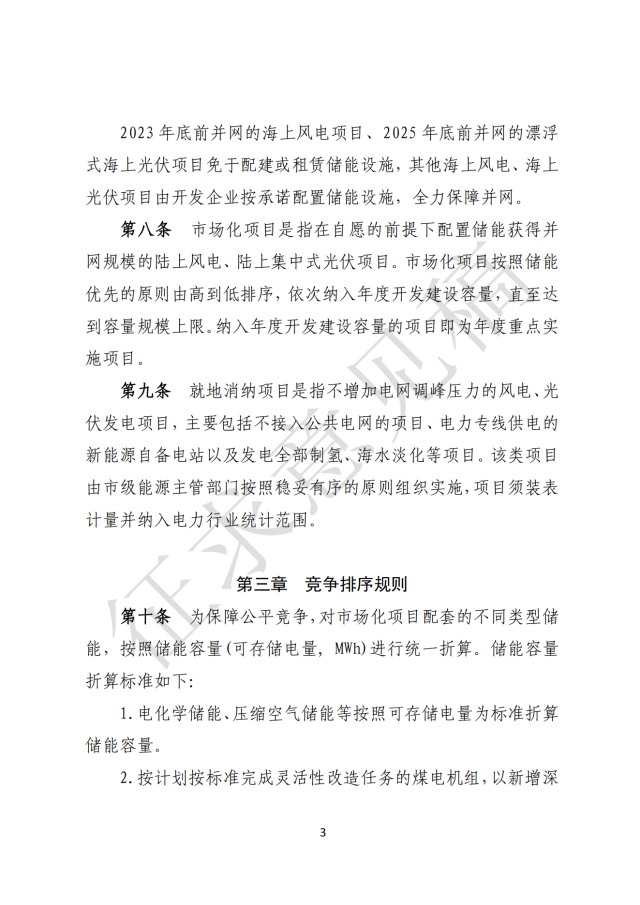 對市場化項(xiàng)目,按照儲能容量比例、儲能方式等因素,由高到低通過競爭排序獲得并網(wǎng)資格。