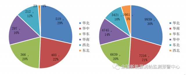 二季度各區(qū)域風(fēng)電新增(左)、累計(右)裝機(jī)(萬千瓦)