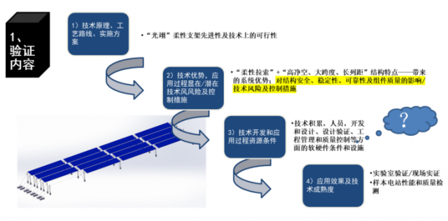 本次柔性支架驗證采用技術(shù)評審和樣本電站檢測評估模式,驗證內(nèi)容詳見下圖。