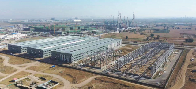 “從今年5月開始建設(shè),到現(xiàn)在工程量已完成43%,預(yù)計在10月中旬,我們的主體結(jié)構(gòu)將實現(xiàn)封頂,然后進入我們的工藝管道和設(shè)備的安裝階段。爭取明年2月份達到中交條件,3月份實現(xiàn)試車。”內(nèi)蒙古大全新能源有限公司施工管理部施工經(jīng)理柴宏偉說。