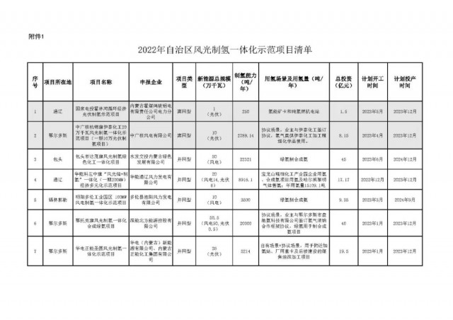 為深入貫徹習(xí)近平總書記關(guān)于內(nèi)蒙古系列重要指示精神和《內(nèi)蒙古自治區(qū)人民政府辦公廳關(guān)于促進(jìn)氫能產(chǎn)業(yè)高質(zhì)量發(fā)展的意見》(內(nèi)政辦發(fā)〔2022〕15號(hào))精神,有序推動(dòng)全區(qū)風(fēng)光制氫一體化示范項(xiàng)目建設(shè),按照《內(nèi)蒙古自治區(qū)風(fēng)光制氫一體化示范項(xiàng)目實(shí)施細(xì)則(2022年版)》有關(guān)要求,我局組織評(píng)估并優(yōu)選了7個(gè)風(fēng)光制氫一體化示范項(xiàng)目(以下簡稱“示范項(xiàng)目”),經(jīng)自治區(qū)人民政府審定同意批復(fù)實(shí)施。現(xiàn)將有關(guān)事宜通知如下。