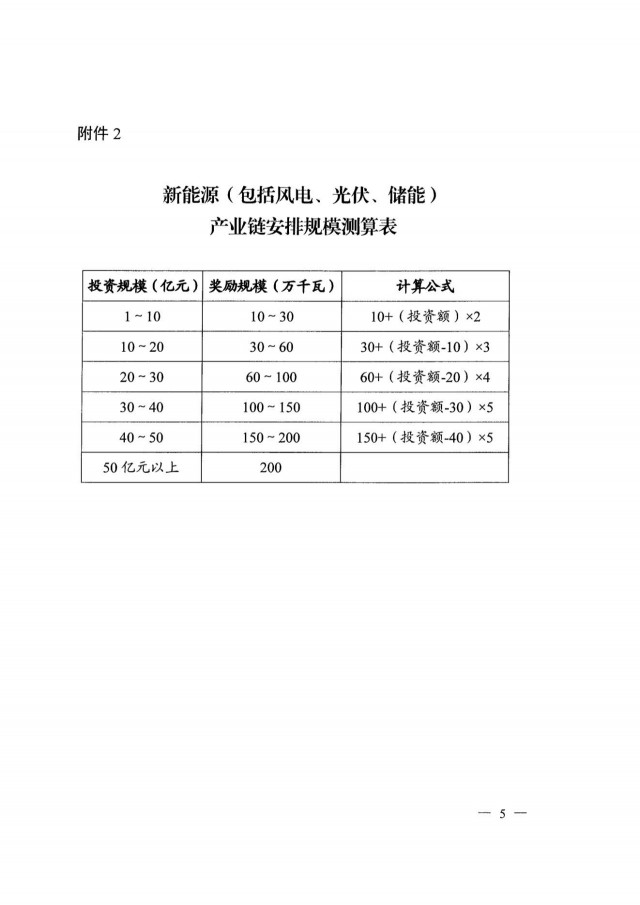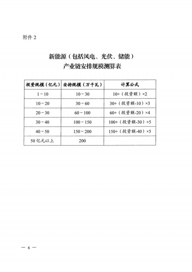 在項(xiàng)目規(guī)模分配規(guī)則方面則根據(jù)制造業(yè)項(xiàng)目的具體投資額按對應(yīng)公式進(jìn)行計(jì)算,例如1~10億元投資對應(yīng)100~300MW項(xiàng)目規(guī)模,30~40億元投資對應(yīng)1~1.5GW,50億元以上則統(tǒng)一為2GW項(xiàng)目規(guī)模。需要注意的是,不支持耗能強(qiáng)度高于全省平均水平的項(xiàng)目,若屬于補(bǔ)鏈項(xiàng)目則安排規(guī)模減半。
