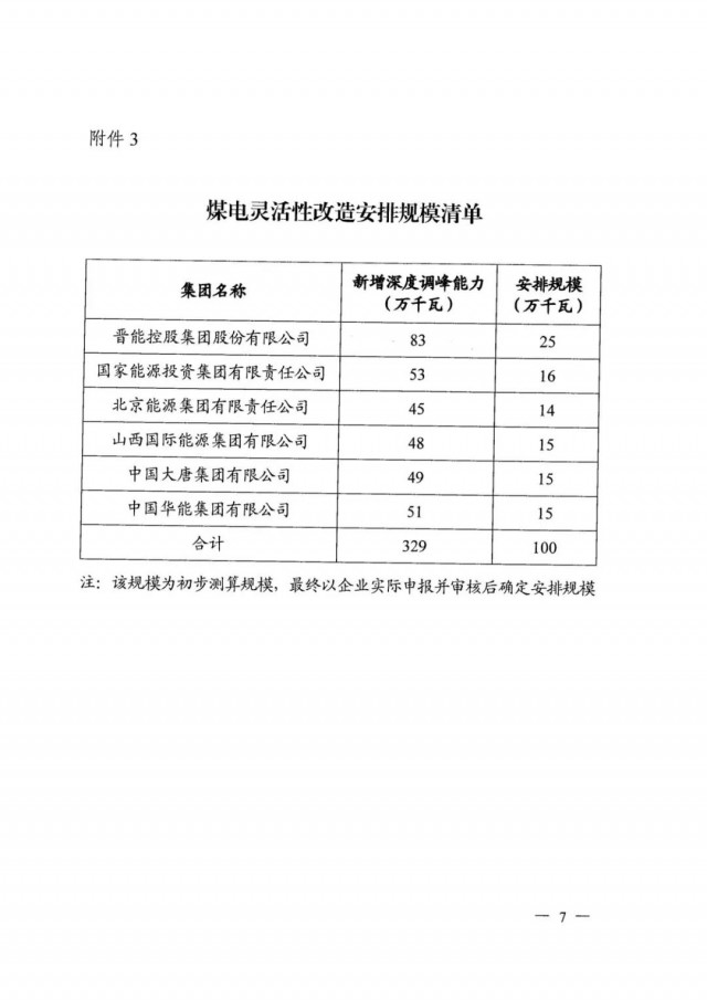 煤電靈活性改造調(diào)峰配套新能源項(xiàng)目的申報(bào)范圍則是2021年底前完成改造的煤電機(jī)組,安排規(guī)模則是按照新增深度調(diào)峰能力的30%確定。初步測算確定晉能、國家能源集團(tuán)、京能、山西國際能源、大唐、華能6家企業(yè)獲得1GW煤電改造配套項(xiàng)目,具體仍需以企業(yè)實(shí)際申報(bào)規(guī)模為準(zhǔn)。