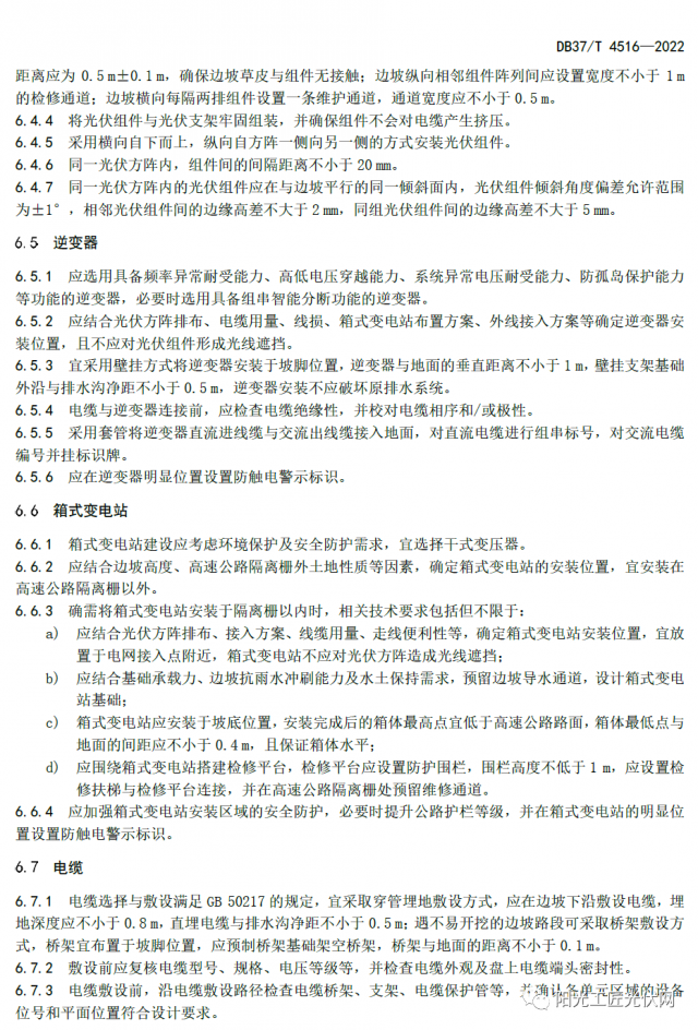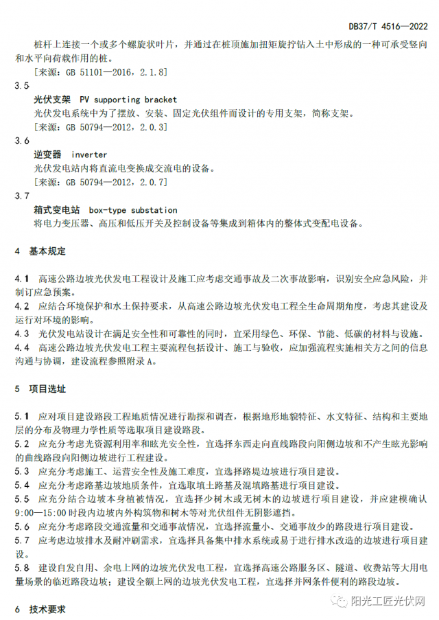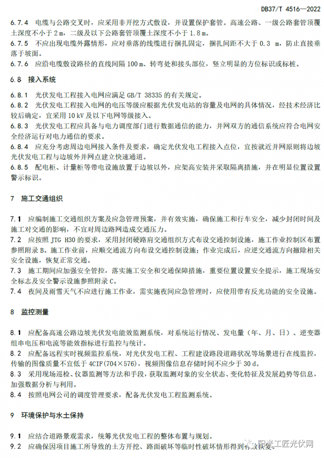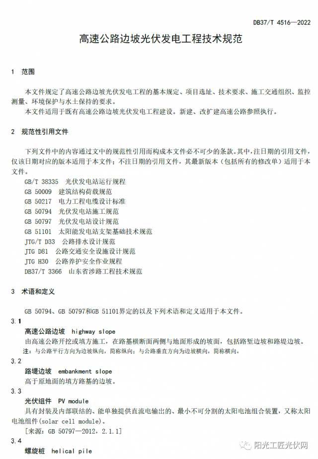 山東高速集團黨委常委、副總經(jīng)理石振源回答說,本標準是在現(xiàn)行光伏發(fā)電工程建設(shè)技術(shù)標準體系下,根據(jù)高速公路特點制定的。標準規(guī)定了邊坡光伏發(fā)電工程的項目選址、施工交通組織、監(jiān)控測量、環(huán)境保護與水土保持等技術(shù)要求,內(nèi)容詳細、全面、完整,具有較強的專業(yè)性和操作性。
