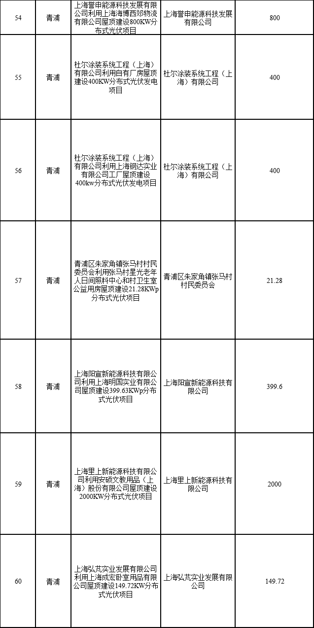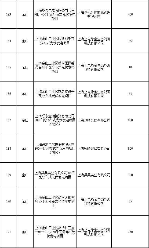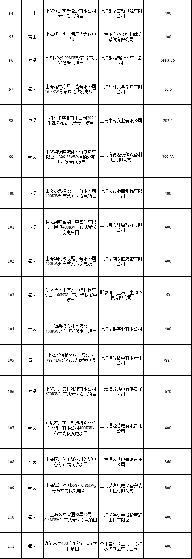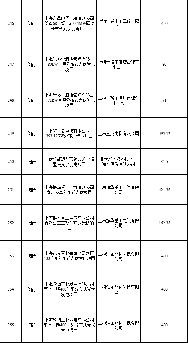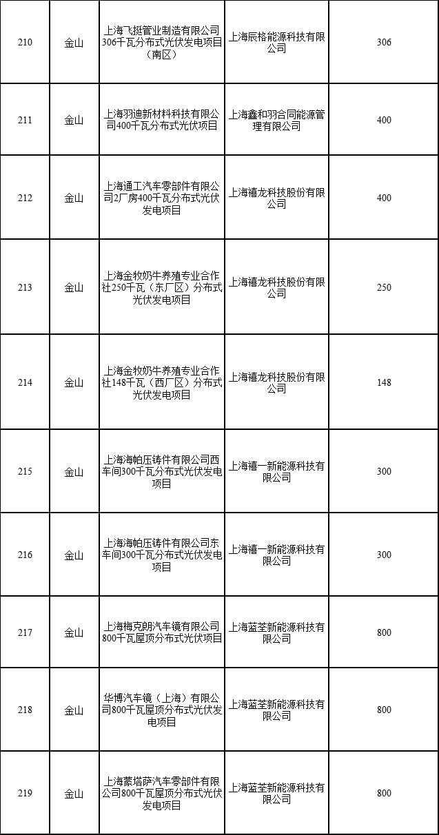13個項目申請項目變更條件予以確認(rèn),其中:企業(yè)分布式項目5個。(1)經(jīng)青浦區(qū)發(fā)展改革委申請核實,“上海電氣建筑節(jié)能有限公司利用國展中心屋頂建設(shè)2.2MW分布式光伏電站項目(2017年第二批目錄)”,單位名稱從“上海電氣建筑節(jié)能有限公司”變更為“上海電氣數(shù)智生態(tài)科技有限公司”。(2)經(jīng)崇明區(qū)發(fā)展改革委申請核實,“上海綠兆新能源科技有限公司實施崇匠建設(shè)(上海)有限公司52.02KW屋頂分布式光伏發(fā)電項目(2021年第一批目錄)”,單位名稱從“上海綠兆新能源科技有限公司”變更為“崇電科技(上海)有限公司”。(3)經(jīng)嘉定區(qū)發(fā)展改革委申請核實,“上海圣飛新能源嘉定區(qū)興賢路789號上海連盈螺絲有限公司559千瓦分布式光伏發(fā)電項目(2021年第一批目錄)”,單位名稱從“上海圣飛新能源科技有限公司”變更為“嘉興勝錦新能源有限公司”。(4)經(jīng)金山區(qū)發(fā)展改革委申請核實,“上海復(fù)鏑實業(yè)有限公司20千瓦分布式光伏發(fā)電項目(2018年第一批目錄)”,單位名稱從“上海復(fù)鏑實業(yè)有限公司”變更為“上海復(fù)鐳投資管理有限公司”。(5)經(jīng)閔行區(qū)發(fā)展改革委申請核實,“國核工程有限公司146.965KWp屋頂分布式光伏發(fā)電項目(2020年第一批目錄)”,單位名稱從“國核工程有限公司”變更為“上海核工程研究設(shè)計院有限公司”。