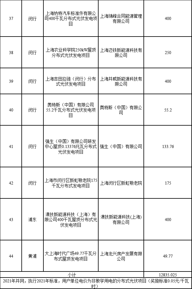 附件3:2022年第二批上海市可再生能源和新能源專項資金獎勵項目表(企業(yè)分布式光伏項目)