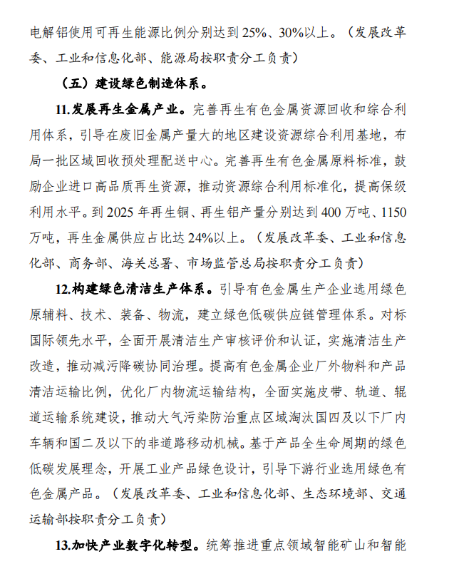 提高可再生能源使用比例,鼓勵企業(yè)在資源環(huán)境可承載的前提下向可再生能源富集地區(qū)有序轉(zhuǎn)移,逐步減少使用火電的電解鋁產(chǎn)能。利用電解鋁、工業(yè)硅等有色金屬生產(chǎn)用電量大、負荷穩(wěn)定等特點,支持企業(yè)參與以消納可再生能源為主的微電網(wǎng)建設(shè),支持具備條件的園區(qū)開展新能源電力專線供電,提高消納能力。鼓勵和引導(dǎo)有色金屬企業(yè)通過綠色電力交易、購買綠色電力證書等方式積極消納可再生能源,確??稍偕茉措娏ο{責(zé)任權(quán)重高于本區(qū)域最低消納責(zé)任權(quán)重。力爭2025年、2030年電解鋁使用可再生能源比例分別達到25%、30%以上。