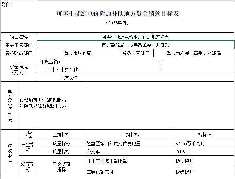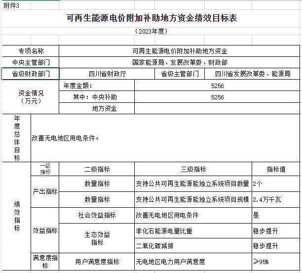附件:1.可再生能源電價(jià)附加補(bǔ)助地方資金預(yù)算匯總表3.可再生能源電價(jià)附加補(bǔ)助地方資金績(jī)效目標(biāo)表