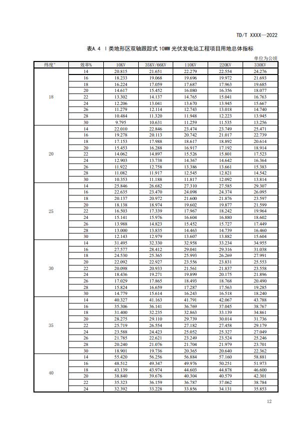 12月5日,自然資源部發(fā)布“《光伏發(fā)電站工程項目用地控制指標(biāo)》等3項行業(yè)標(biāo)準(zhǔn)報批稿公示”,文件指出:光伏發(fā)電站工程項目用地總體指標(biāo)按Ⅰ類地形區(qū)、Ⅱ類地形區(qū)、Ⅲ類地形區(qū)分別計算。光伏發(fā)電站工程項目處于兩個或兩個以上地形區(qū)時,應(yīng)根據(jù)不同地形區(qū)分別計算用地規(guī)模,再累計得出總用地面積。項目用地總面積應(yīng)符合各地形區(qū)用地總體指標(biāo)之和的規(guī)定。