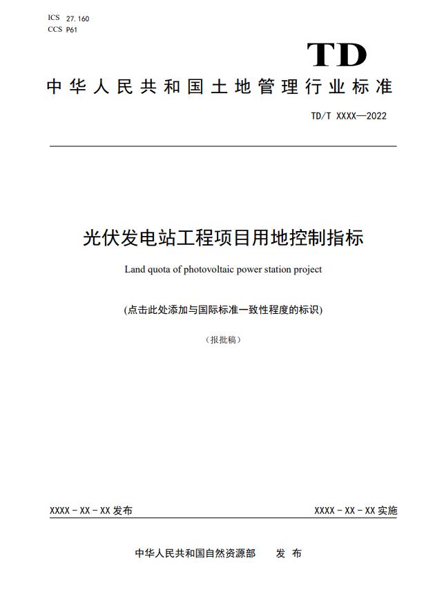 《光伏發(fā)電站工程項目用地控制指標(biāo)》等3項行業(yè)標(biāo)準(zhǔn)報批稿公示