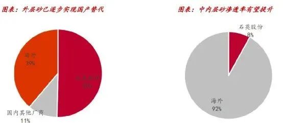 光伏石英坩堝產(chǎn)品端:光伏行業(yè)由于產(chǎn)品精密度程度高、技術(shù)發(fā)展快,對(duì)石英坩堝的純度、精度要求日益嚴(yán)格。我國(guó)的石英制品行業(yè)起步較晚,只有少數(shù)規(guī)?;髽I(yè)的石英坩堝技術(shù)方面達(dá)到先進(jìn)水平。技術(shù)上來(lái)看,近幾年我國(guó)石英制品行業(yè)的技術(shù)進(jìn)步較為明顯,尤其是石英坩堝技術(shù)水平與國(guó)外企業(yè)產(chǎn)品的差距逐步縮小,在坩堝尺寸、純度、拉晶時(shí)間和拉晶次數(shù)等方面均取得顯著進(jìn)步。此外,國(guó)內(nèi)石英坩堝具有一定的成本優(yōu)勢(shì),在質(zhì)量和性能等方面與進(jìn)口石英坩堝的差距正逐漸縮小。這些都為國(guó)產(chǎn)化創(chuàng)造了條件。從細(xì)分部件來(lái)看,外層砂已基本實(shí)現(xiàn)國(guó)產(chǎn)替代,中內(nèi)層砂產(chǎn)品和客戶認(rèn)可度逐步提升。目前石英股份的高純石英砂仍以外層砂為主,我們預(yù)計(jì)石英股份在中內(nèi)層砂質(zhì)量以及客戶認(rèn)可度上均有提升,并有望逐步提高中內(nèi)層砂的滲透率。我們預(yù)計(jì)21年石英股份外層砂份額約50%,中內(nèi)層砂份額約8%。