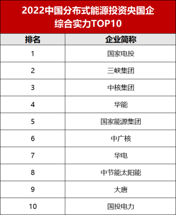 在各大央國企之間,根據(jù)已有項(xiàng)目規(guī)模、計(jì)劃裝機(jī)數(shù)量、以及近幾年行業(yè)的影響力綜合評估,各大能源集團(tuán)之間呈現(xiàn)出一定差距。索比光伏網(wǎng)整理《2022年分布式能源投資央國企綜合實(shí)力TOP10》企業(yè)榜單,僅供參考。