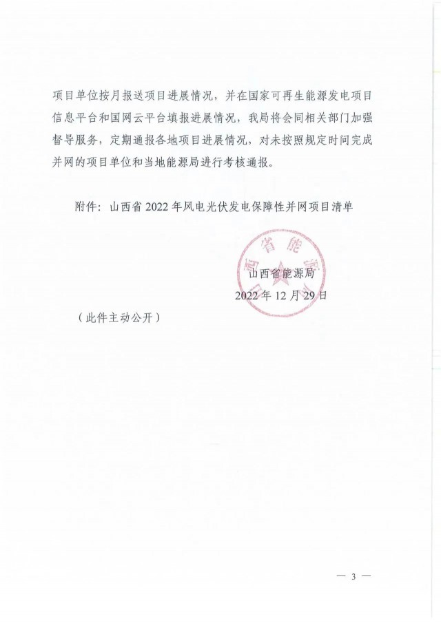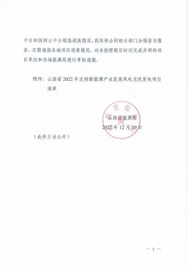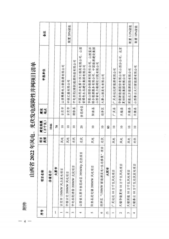 近日,山西省能源局先后印發(fā)了《關(guān)于下達(dá)山西省2022年風(fēng)電光伏發(fā)電保障性并網(wǎng)年度建設(shè)計(jì)劃的通知》(晉能源新能源發(fā)〔2022〕428號(hào))和《關(guān)于下達(dá)山西省2022年支持新能源產(chǎn)業(yè)發(fā)展風(fēng)電光伏發(fā)電建設(shè)計(jì)劃的通知》(晉能源新能源發(fā)〔2022〕429號(hào)),共下達(dá)風(fēng)電、光伏項(xiàng)目132個(gè),規(guī)模合計(jì)1418萬(wàn)千瓦(14.18GW)。
