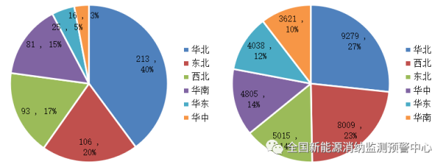 三季度各區(qū)域風(fēng)電新增(左)、累計(右)裝機(萬千瓦)