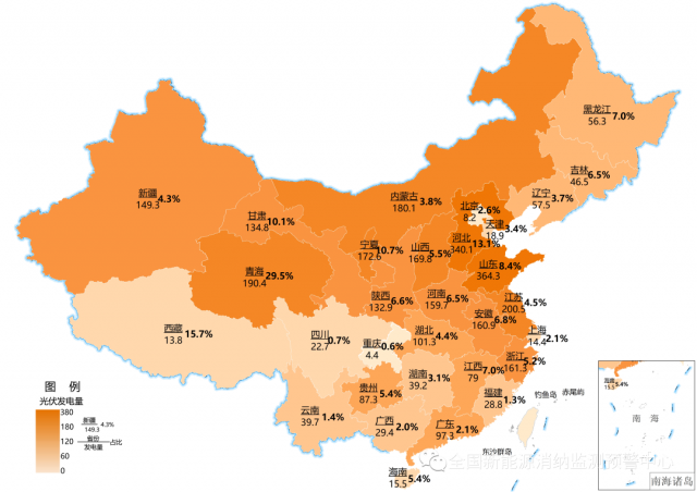 截至9月底累計光伏發(fā)電量(億千瓦時)及占本地區(qū)總發(fā)電量比重
