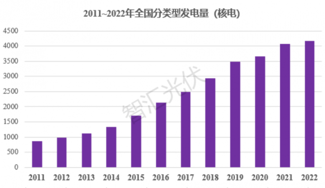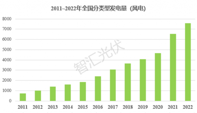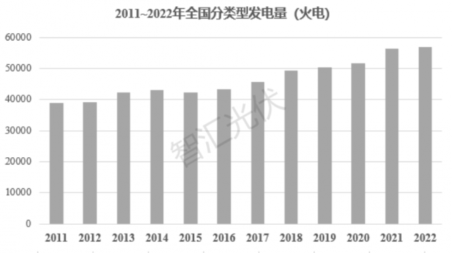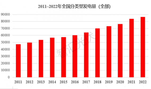 以下是2011-2022年全國(guó)各類型發(fā)電量情況。