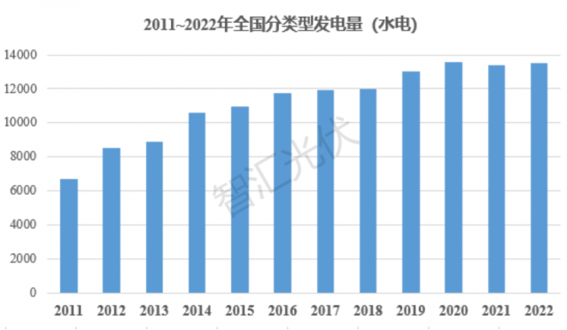 截止2022年底,全國(guó)水電、火電、核電、風(fēng)電、光伏的裝機(jī)容量分別新增4.135億千瓦、13.324億千瓦、5553萬(wàn)千瓦、3.654億千瓦和3.926億千瓦,合計(jì)25.64億千瓦。