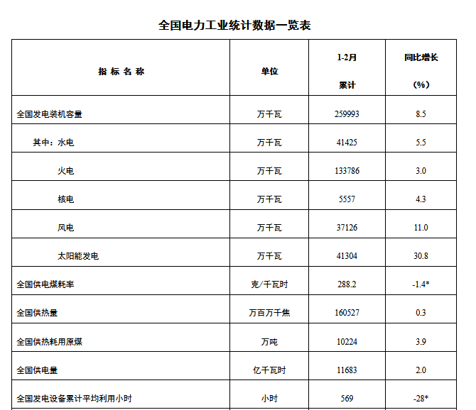 3月21日,國家能源局發(fā)布1-2月份全國電力工業(yè)統(tǒng)計(jì)數(shù)據(jù)。