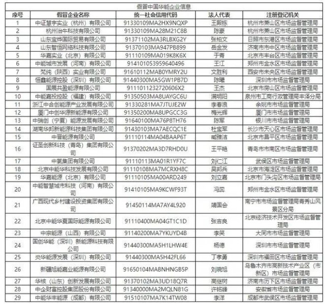 中央企業(yè)公告的假冒國企名單匯總(第一批)