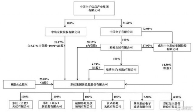 截至最新招股書簽署日,公司的控股股東為彩虹集團(tuán),其直接及間接持有公司34.43%的股份;實(shí)際控制人為中國電子,其通過彩虹集團(tuán)、瑞博電子、中電彩虹及中電金投合計(jì)持有公司74.91%的股份。