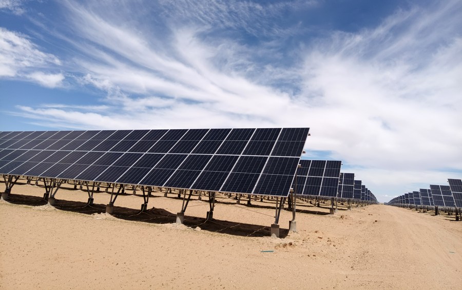 業(yè)內(nèi)人士表示,連成片的光伏板就像覆蓋在荒漠草原上的屏障,可減弱板下區(qū)域陽光照射和大風(fēng)吹刮程度,減少土壤水分蒸發(fā),有助于植被更好地生長。