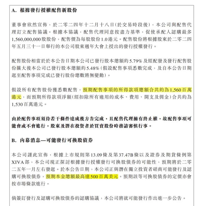 12月19日早間,協(xié)鑫科技通過(guò)港交所發(fā)布公告,公司完成15.6億股閃電配售,配售價(jià)每股1港元。同時(shí),公司將發(fā)行可轉(zhuǎn)債5億美元。