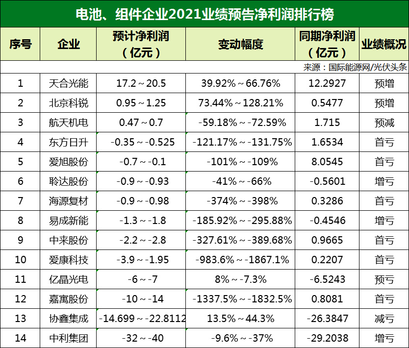 近期,上市企業(yè)陸續(xù)發(fā)布2021年業(yè)績預(yù)告,國際能源網(wǎng)對其中77家光伏企業(yè)進行了統(tǒng)計,其中53家企業(yè)凈利潤實現(xiàn)正增長,占68.8%,24家企業(yè)凈利潤為負值,占比達到31.2%。那么2021年光伏行業(yè)哪些領(lǐng)域最賺錢,又有哪些板塊站在風(fēng)口卻賠錢呢?