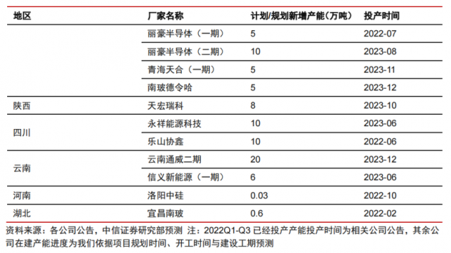 據(jù)悉,三氯氫硅為多晶硅生產(chǎn)及硅烷偶聯(lián)劑生產(chǎn)的必備原材料。中國(guó)為多晶硅的主要生產(chǎn)者,且新增產(chǎn)能主要集中于中國(guó)。多晶硅產(chǎn)能擴(kuò)張十分迅速,中信證券王喆在10月11日發(fā)布的研報(bào)中統(tǒng)計(jì)得到,2022年新增產(chǎn)能將達(dá)約70萬噸,2023 年預(yù)計(jì)新增產(chǎn)能約164萬噸。