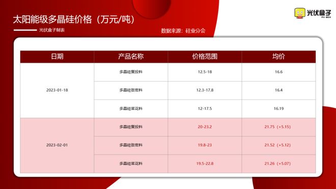 2023年2月1日硅業(yè)分會(huì)發(fā)布最新硅料價(jià)格,漲幅超31%。