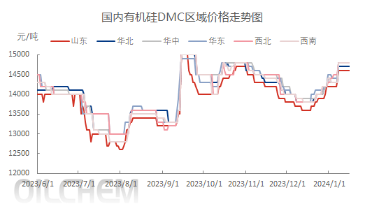 據(jù)悉,本輪有機(jī)硅DMC漲價(jià)始于合盛硅業(yè)(603260.SH)率先將DMC價(jià)格上調(diào)300元/噸,進(jìn)而引發(fā)主要廠商跟漲。“1月6號(hào)突然進(jìn)行了提價(jià),上漲300元/噸,打破了該廠家價(jià)格上持久的安靜,其他廠商開始限量惜售,整個(gè)市場上現(xiàn)貨變得緊張,恐慌情緒下引發(fā)了下游集中補(bǔ)庫。從現(xiàn)在DMC廠商情況來看,在前期的調(diào)度下出貨沒有任何壓力。”隆眾資訊分析師劉昊介紹稱。