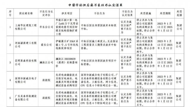 1月30日,華能集團(tuán)發(fā)布《關(guān)于供應(yīng)商不良行為處理的公告》,共處罰27家企業(yè)。其中包括3家光伏相關(guān)公司。