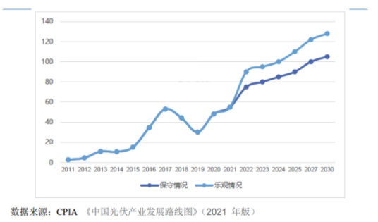 根據(jù)光伏產(chǎn)業(yè)協(xié)會(huì)數(shù)據(jù)顯示和預(yù)計(jì),過(guò)去十年(2011-2021年)的新增裝機(jī)規(guī)模呈現(xiàn)爆炸式增長(zhǎng),未來(lái)8年(2022-2030年)年新增規(guī)模仍將保持高速增長(zhǎng)。光伏行業(yè)未來(lái)很長(zhǎng)一段時(shí)間都將是一個(gè)“風(fēng)口”行業(yè)。