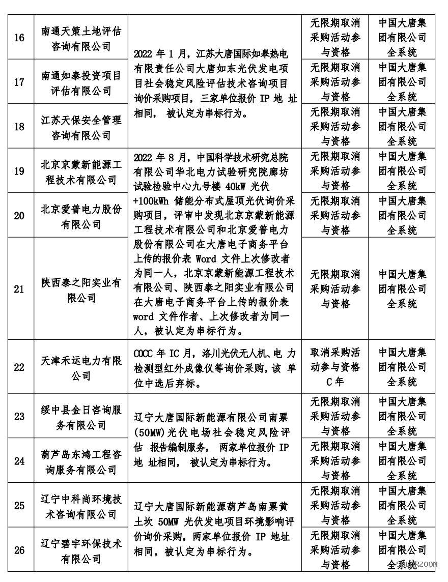 中國大唐集團(tuán)有限公司關(guān)于供應(yīng)商不良行為處理情況的公告 (2023年第2批)