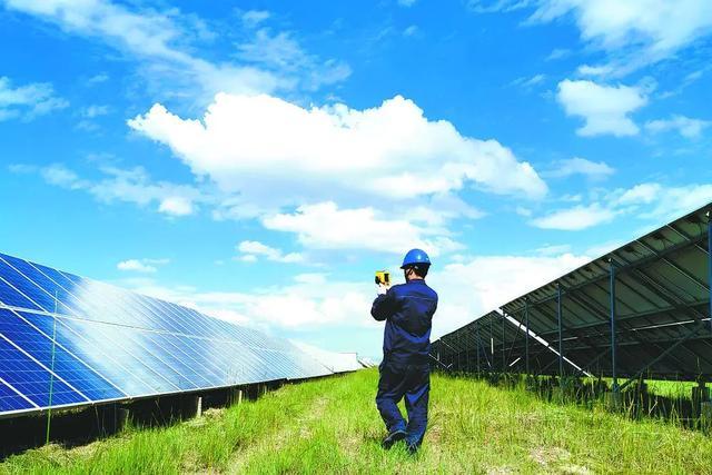 檢測光伏組件。中廣核新能源青海分公司供圖