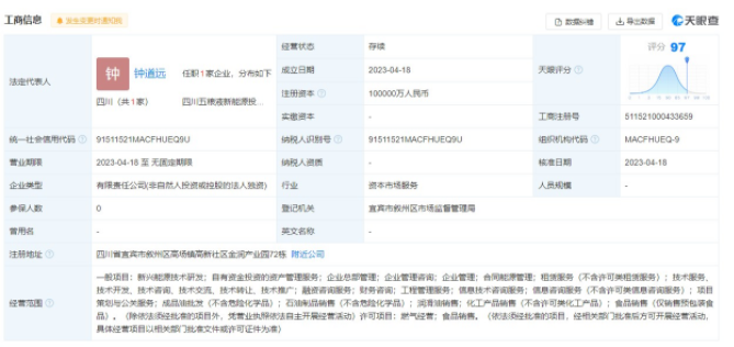 天眼查資料顯示,四川五糧液新能源投資有限責(zé)任公司經(jīng)營范圍包括新興能源技術(shù)研發(fā);自有資金投資的資產(chǎn)管理服務(wù);合同能源管理;成品油批發(fā);石油制品銷售;潤滑油銷售;燃?xì)饨?jīng)營等。