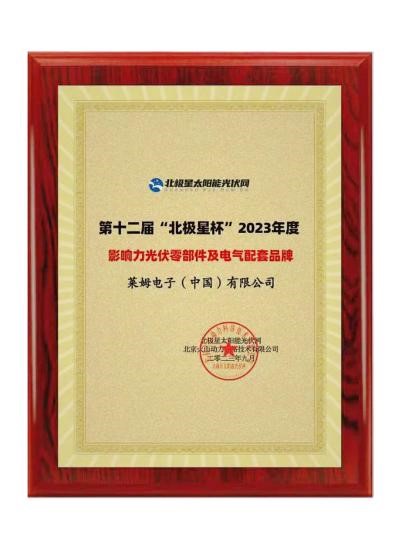 萊姆電子喜獲第十二屆“北極星杯”2023年度影響力光伏零部件及電氣配套品牌獎