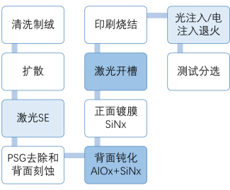 PERC技術(shù)以背面鈍化層的沉積和激光開槽為主,后續(xù)在此基礎(chǔ)上進行工藝改進優(yōu)化時增加了正面的SE激光和光注入/電注入退火等工藝,未來隨著光伏技術(shù)的不斷進步,為提升PERC電池的量產(chǎn)效率,也必將會對電池工藝進行進一步的改進與優(yōu)化。