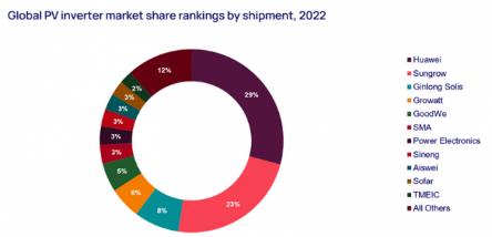 2022年全球光伏逆變器供應商的市場份額