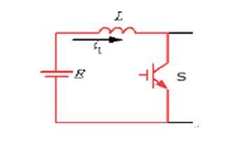 直流電E全部加在電感上,即此時電源E為電感充電,設(shè)開關(guān)管導通時間為Ton,那么在此期間內(nèi)電感上的電壓等于E。